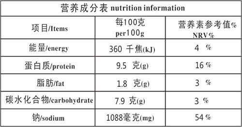 原料及配料:靚竹腸、食鹽、食糖、淀粉、味精。