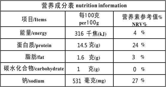 原料及配料:兔肚、食鹽、食糖、淀粉、味精。